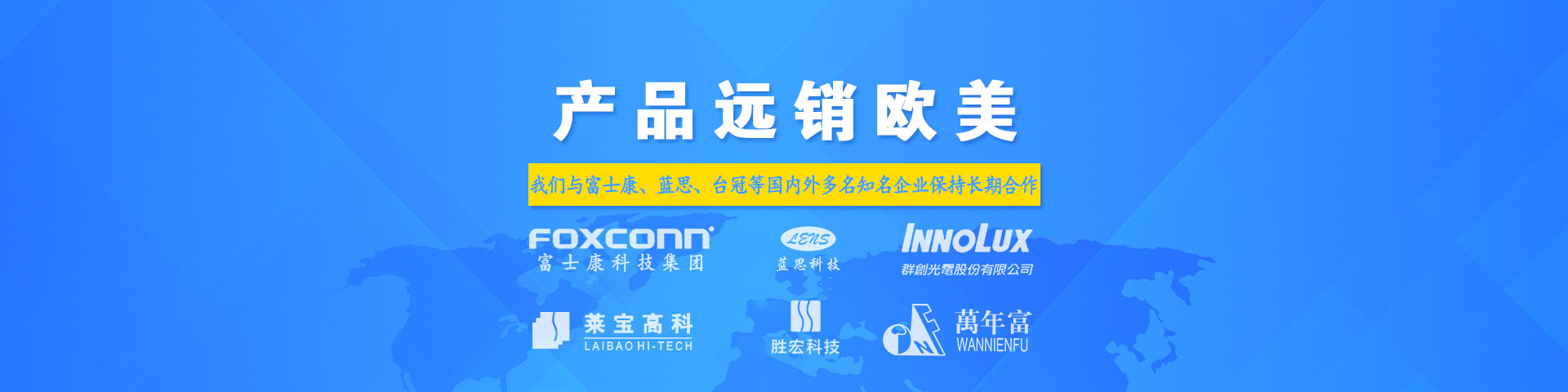 菠萝91网站科技本著以市場為導向、以創新為核心、以品質為基礎的經營理念,為客戶提供具有競爭力的產品。產品被廣泛應用於線路板,觸摸屏,印刷,家電,數碼,安防,儀器儀表,電工電氣,通信及汽車電子等領域,目前公司產品遠銷歐美、中東、東南亞,並與藍思、群創、帝晶等世界先進企業